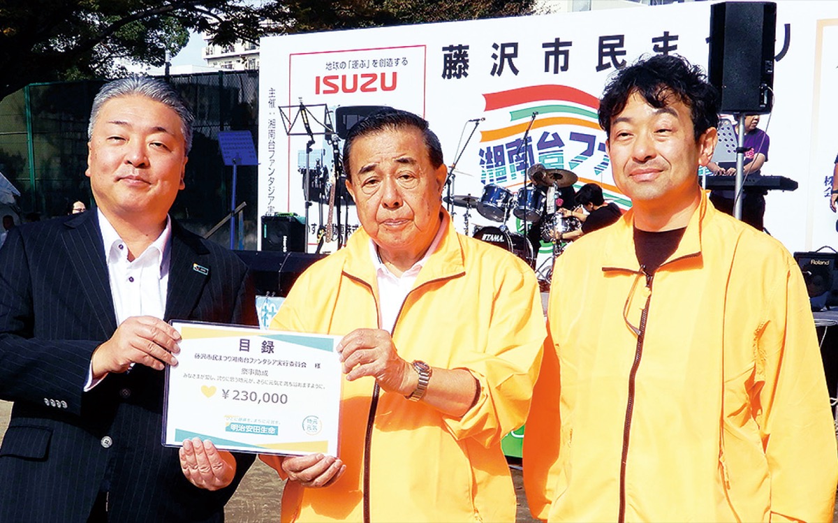 先月26、27日に湘南台駅周辺を会場に行われた藤沢市民まつり湘南台ファンタジア(酒井一二実行委員会会長)に、明治安田が開催支援として23万円を寄付した。