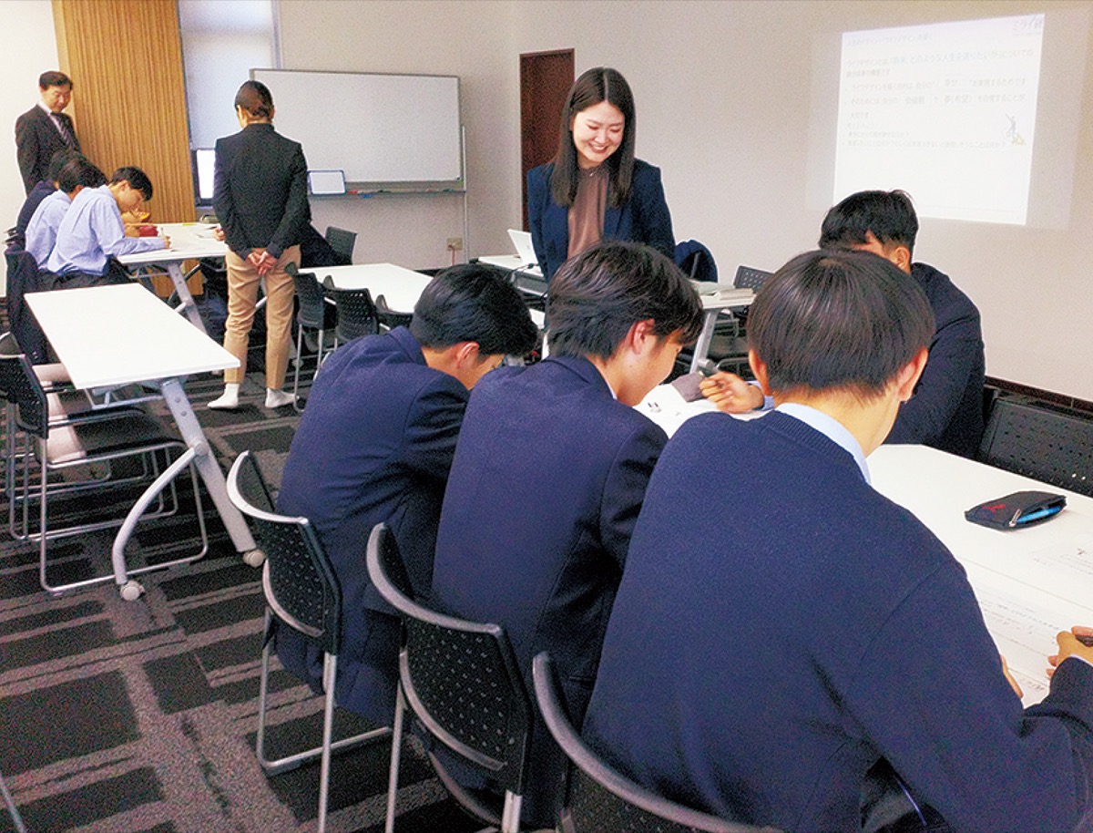 授業を終えた生徒は「NISAや投資とか聞いたことがあったけどわからなかったことが理解できた。今後の人生に活かしていきたい」や「将来の夢だったり何事にもお金がかかってくると知った。そのための貯蓄の仕方や増やし方がわかって良かった」と感想を話した。教鞭をとった同支店の青木彩純さんと溝口怜奈さんは「生徒の皆さんが真剣に聞いてくれてよかった。将来の夢の実現に向けて少しでもお手伝いができていたら嬉しい」と口を揃えた。