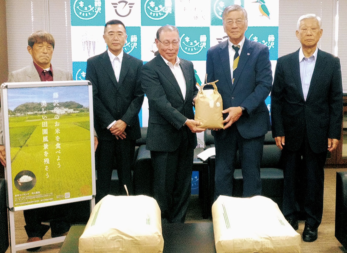 藤沢産のブランド米「はるみ」の新米60kgが2日、さがみ農業協同組合藤沢市稲作部会(金子貞廣部長)から藤沢市に寄贈された。新米は、市社会福祉協議会を通じ、子ども食堂などに提供される。