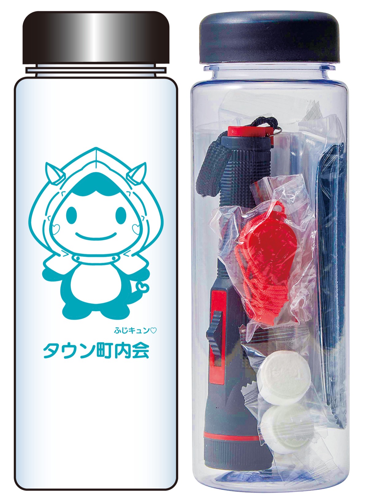 今年の元日に発生した能登半島地震では、災害時に向けた備えの大切さが改めて認識された。タウンニュース社ではいざという時に役立つアイテムがセットになった「防災ボトル」に、藤沢市公式マスコットキャラクター「ふじキュン♡」のイラストと団体名などを印刷したオリジナル商品の取り扱いを開始した。