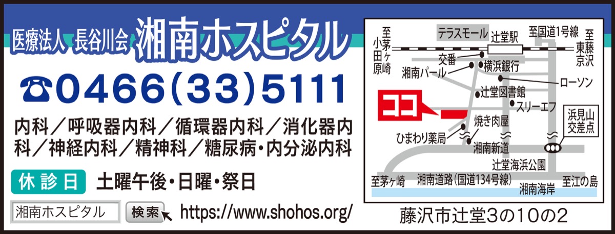 藤沢市辻堂3丁目にある湘南ホスピタルは、地域密着型の内科病院。