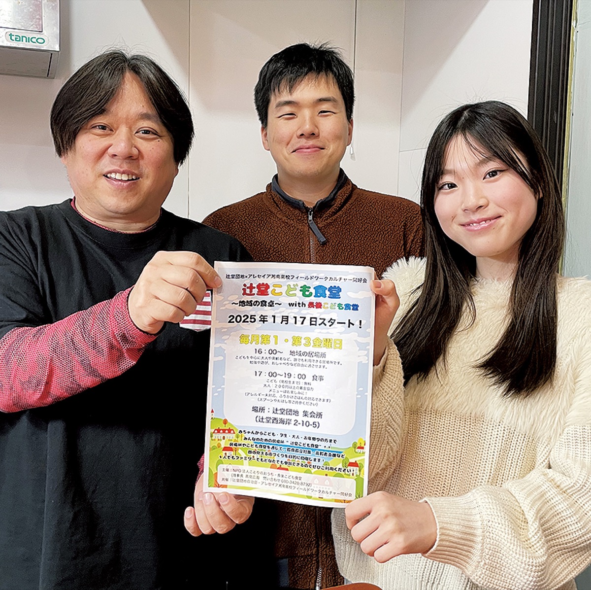 辻堂こども食堂は、毎月第1・第3金曜日に開催。午後4時からは地域の居場所として子どもから高齢者まで誰でも参加でき、勉強や遊びなど自由に楽しんで交流する。午後5時から7時は食事の時間で、子ども(高校生まで)は無料で、大人は200円以上の募金で食事が提供される(スプーンや箸は持参)。同法人の高見広海代表は「長後から距離があり、これまで開催できなかった。団地自治会やアレセイア湘南高校の協力があって実現できた」と話す。辻堂こども食堂について詳しくは【携帯電話】080・3428・8792。