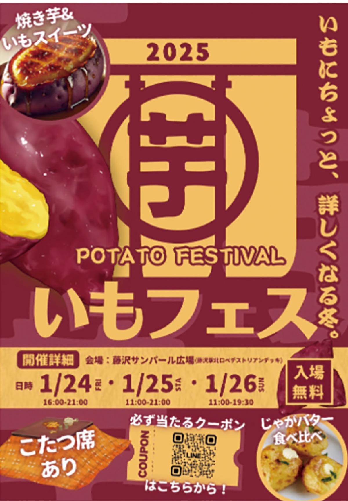 「芋」をテーマにしたイベント「いもフェスin湘南」が25日(土)と26日(日)の2日間、藤沢駅北口サンパール広場で開催される。入場無料。
