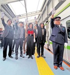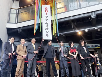 湘南モノレールがTVアニメ『想星のアクエリオンMyth of Emotions』とのコラボ企画として25日、ラッピング車両「想星のアクエリオン号」の運行を開始した。同モノレール「湘南江の島駅」では出発式が行われ、原作の河森正治氏や監督の糸曽賢志氏、鈴木恒夫市長らが発車を祝った。