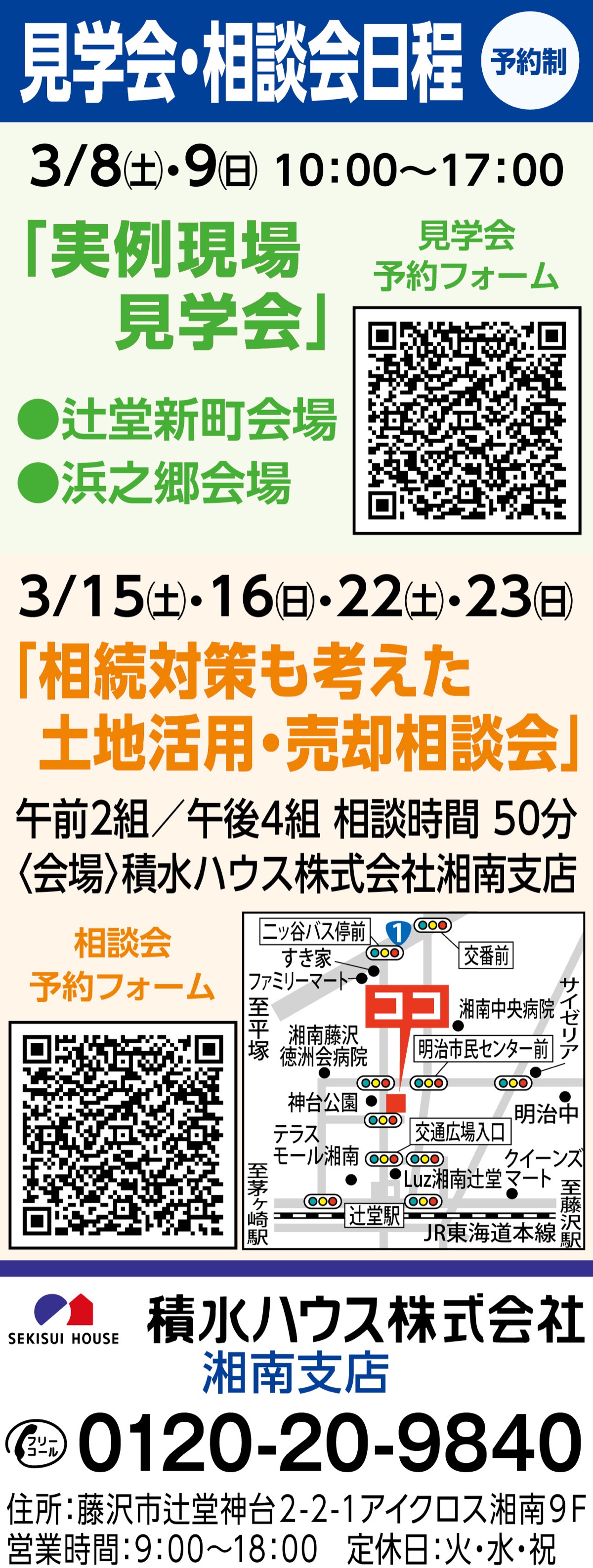 3月8日(土)・9日(日)とは、藤沢と茅ヶ崎市内の「実例現場見学会」を開催(予約制)。