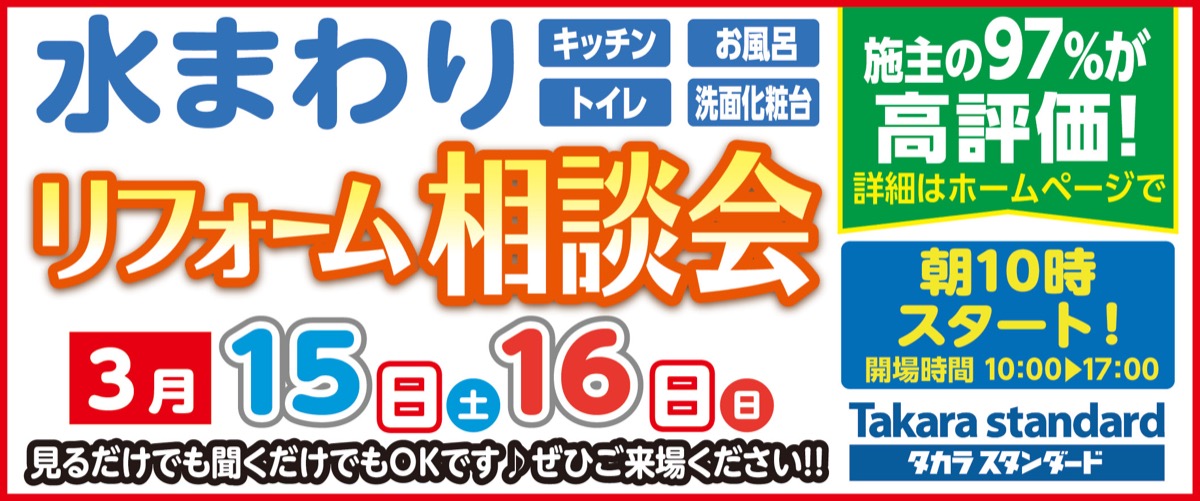 同社が3月15日(土)、16日(日)に石川のタカラスタンダード藤沢ショールームで開催する相談会では、窓の状態や補助金についての話を聞くことができる。当日来場歓迎。「施工実績も豊富にご紹介します。安心な生活がお得に手に入るお手伝いができれば」と同社。