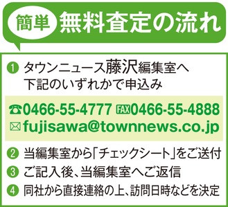 無料査定を希望する人はタウンニュース藤沢編集室へ連絡。後日送付される「チェックシート」を記入し、返信するだけ。3月31日(月)締切。
