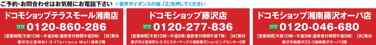 ドコモショップ 藤沢店・テラスモール湘南店・湘南藤沢オーパ店