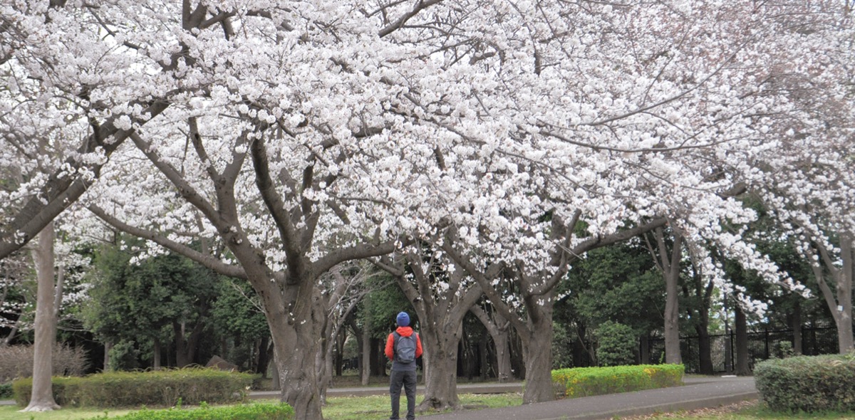 先月31日は花曇りの中、道行く人が桜並木に足を止めた。毎年足を運ぶという親水公園を訪れた大庭在住の男性は「満開になったらまた来たい」と期待を込めた。