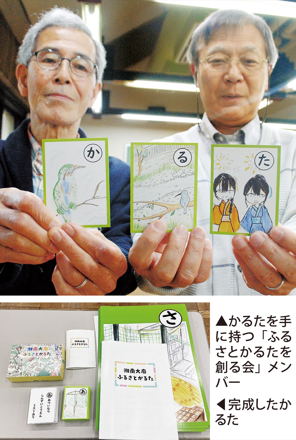 湘南大庭地区郷土づくり推進会議の会員による「ふるさとかるたを創る会」が制作した。テーマに盛り込まれたのは「地元の魅力を再発見」。大庭地区の名所や穴場、特徴などを子どもの目線から取り上げ、かるたとして遊びながら郷土について学んでもらう目的だ。