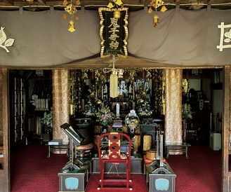 歴史の謎と痕跡が刻まれた同寺。本堂の鬼子母神像を見据えながら「大事に残していきたい」と誓った。