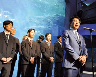 藤沢市、茅ヶ崎市、寒川町を拠点に活動する男子プロバスケットボールチームの湘南ユナイテッドBCは16日、新江ノ島水族館で「スポンサー感謝のつどい」を開いた。
