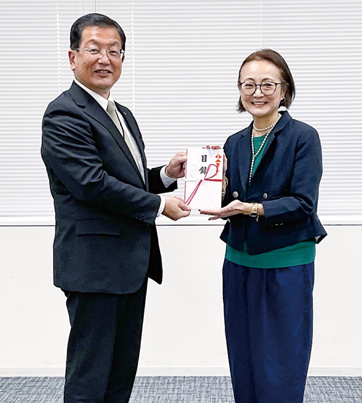 寄贈を受け、岩本將宏教育長は「子どもたちにとって身近な地元の企業が掲載されていて、実際に足を運びやすいと思う。出前授業もしていただきありがたい」と感謝を述べた。