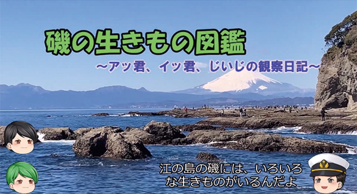 菊池さんのYouTubeチャンネル「磯の生きもの図鑑 アッ君・イッ君・じいじの観察日記」では、江の島の磯に生息する魚や生き物を紹介。「アッ君」「イッ君」と名乗る子どもと「じいじ」と呼ばれる男性キャラクターが掛け合いながら観察のポイントや生態の特徴を分かりやすく解説していくのが特徴だ。