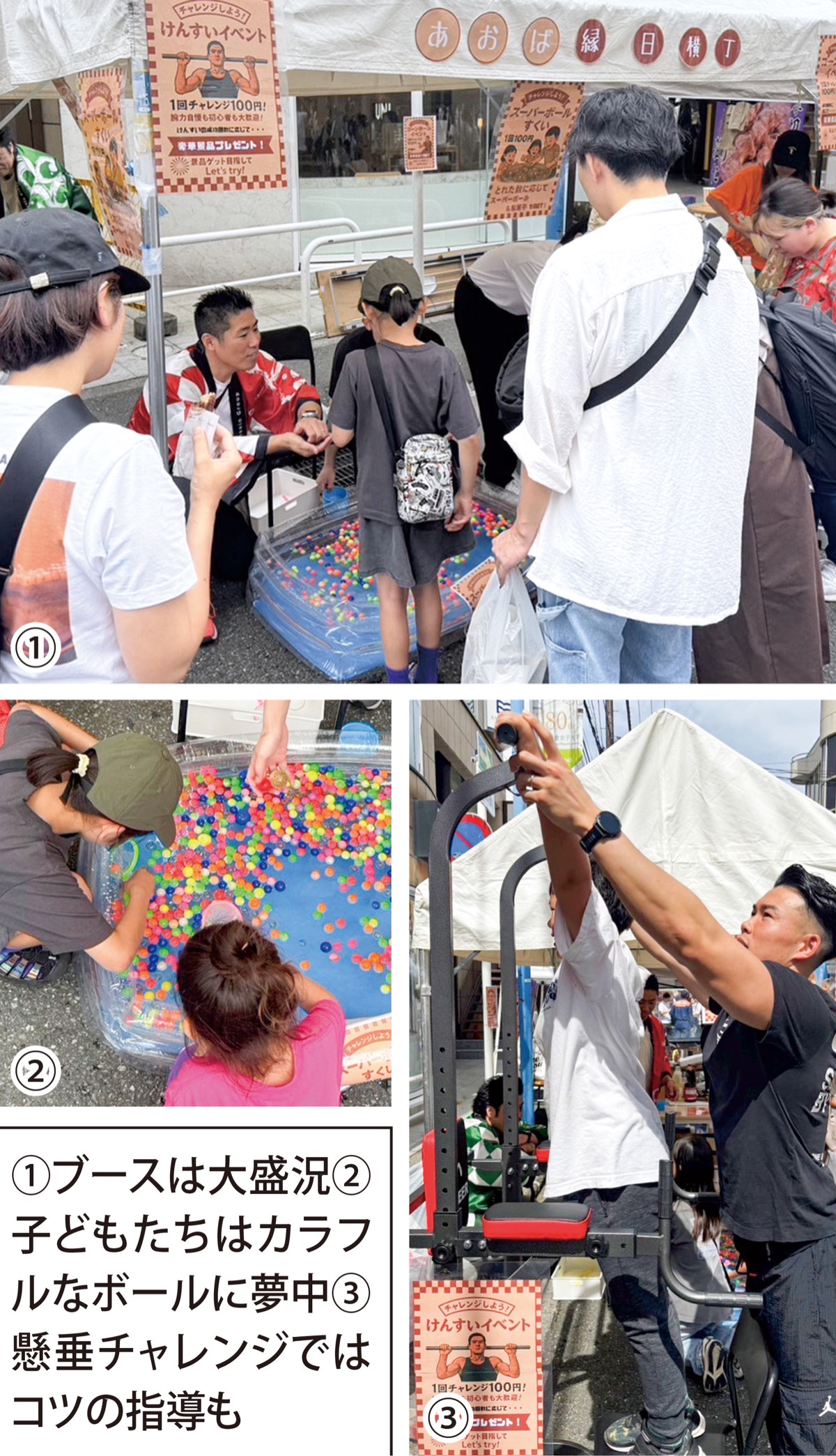 神奈川県を中心に、札幌から沖縄まで全国で整骨院や訪問マッサージ、介護事業を手掛ける「(株)あおばHD」が5月18日、鎌倉市の大船駅東口で開催された「大船まつり」に初参加。懸垂チャレンジなど独自のブースが多くの来場者でにぎわった。