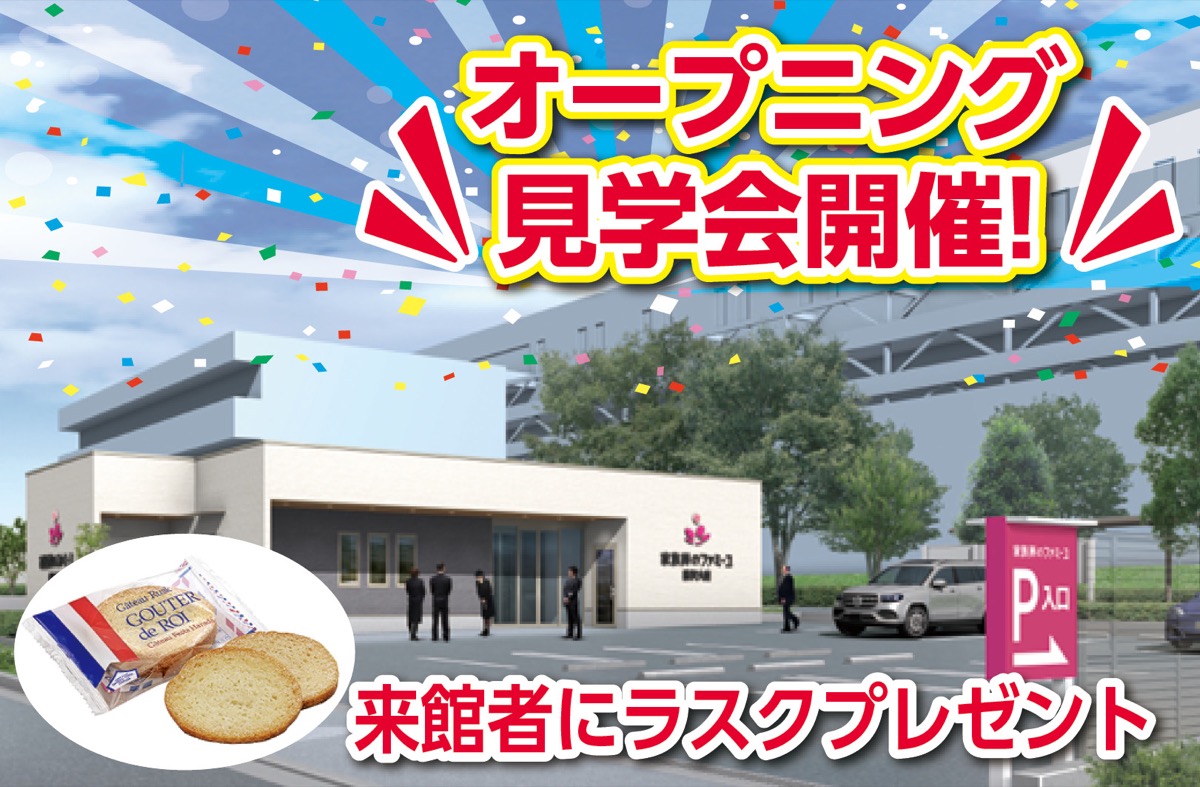 全国1千カ所以上の斎場で10万件超の葬儀実績を誇る家族葬のファミーユは、神奈川県内4店舗目となる「藤沢大庭ホール」をオープンする。これを記念し、6月13日〜15日に見学会を開催する(当日来場も可)。午前10時から午後4時まで。参加費無料。13日・14日は先着25組限定の事前予約制で実施(電話予約【フリーダイヤル】0120・880・926)。来館者には「ガトーフェスタハラダ」のラスク4種セットを、無料のファミーユ会員登録でさらに1千円分のクオカードを進呈。