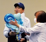 その後、参加者全員で校歌斉唱。また、ラジオパーソナリティーや司会など多方面で活躍するDJ・HAGGY(本名・萩原浩一)さんが「逆境を乗り越えて、人生どうにかなる」と題し、記念講演を行った。