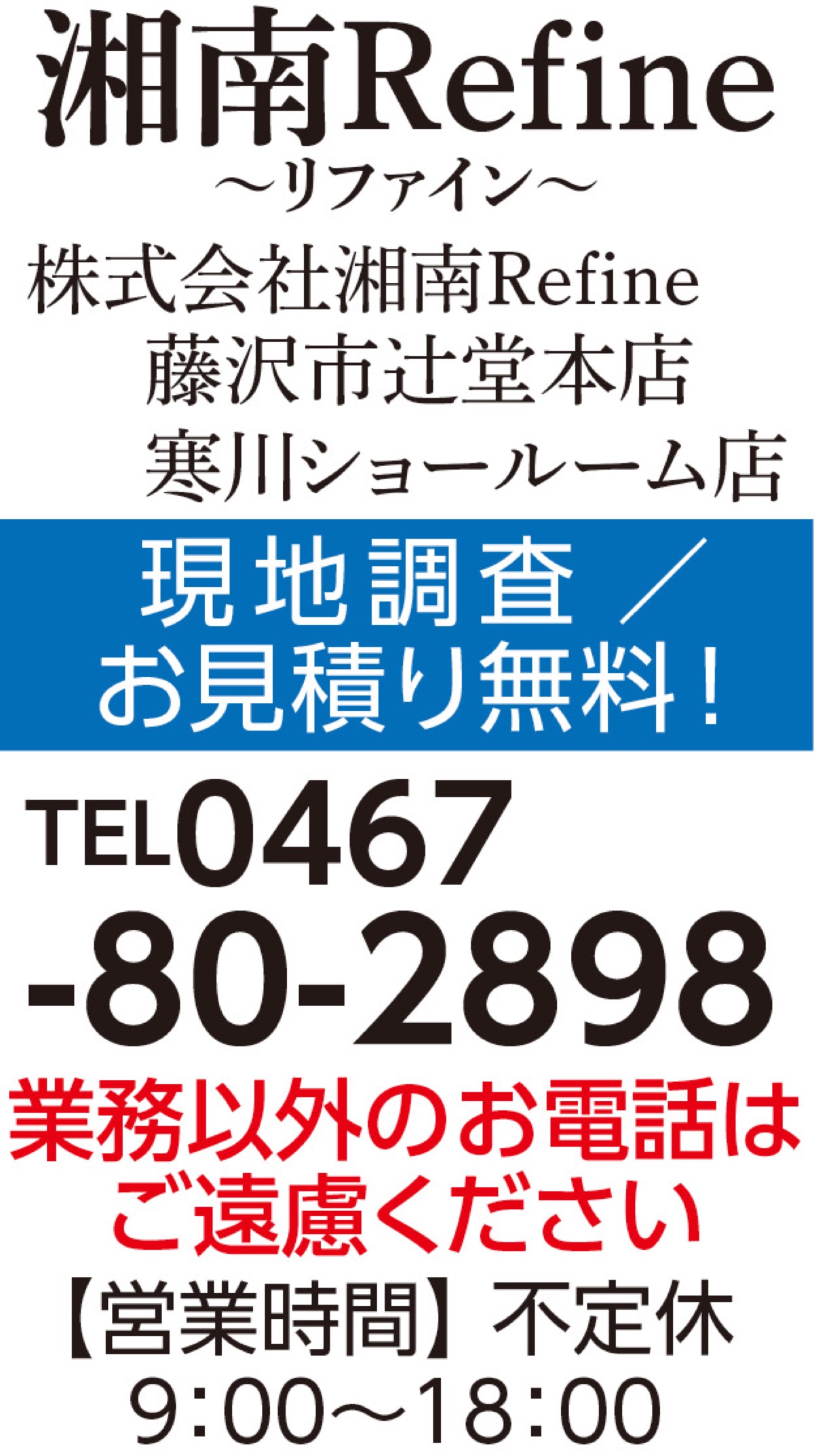 屋根や外壁塗装で数多くの実績を持つ地元企業(株)湘南リファインでは「屋根は人が上らなくても高所カメラでの点検が可能です」と話す。「おかしな声掛けに応えない、屋根にのぼらせない、これが大事です」と呼び掛けている。