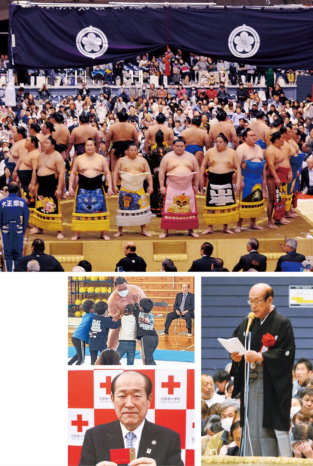 もう1つの大きな貢献が献血。最上氏は日本赤十字社を支援する日赤紺綬有功会の県の会長であり、日赤理事として活動を支援。全国最大規模と言われる巡業と同時開催の献血キャンペーンは、今年、最高記録を更新。積極的な献血普及活動として日赤のみならず相撲界からも注目される。