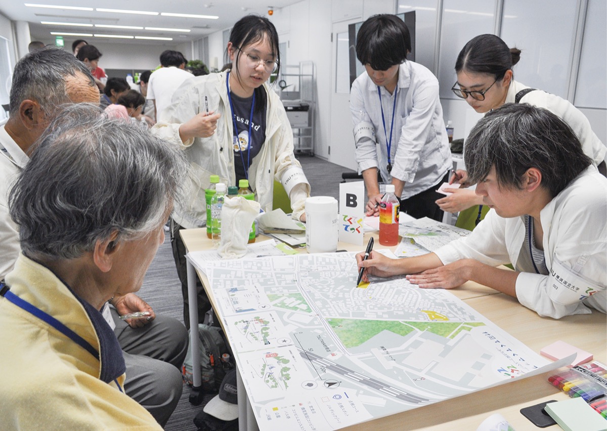 今年度2回目となった同日のテーマは「運動として歩ける環境点検」。参加者は2本のポールを使って歩くフィンランド発祥の全身運動「ノルディックウォーキング」の効果について学んだ後、3班に分かれて実際にまちへと繰り出した。歩道の整備状況や景観・歴史スポットの有無、休憩に適しているか、などをくまなくチェック。同大に戻ってくると、地図が描かれた大判の紙に、その結果を書き込んだ付箋を貼った「点検MAP」を作成し、それぞれ発表した。辻堂在住の61歳男性は「めったに訪れることのない地区だけれど自然が多くて住みやすそう。ただ雑草が伸び放題な箇所もあったので、整備やまちのコンセプトをより明確にすればさらに魅力向上につながるはず」と感想を述べた。
