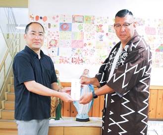 藤沢市内の神輿会「打戻神友會」(金子健太会長)が3日、みその台の児童養護施設「聖園子供の家」(野際良介施設長)に20万円の寄付を行った。