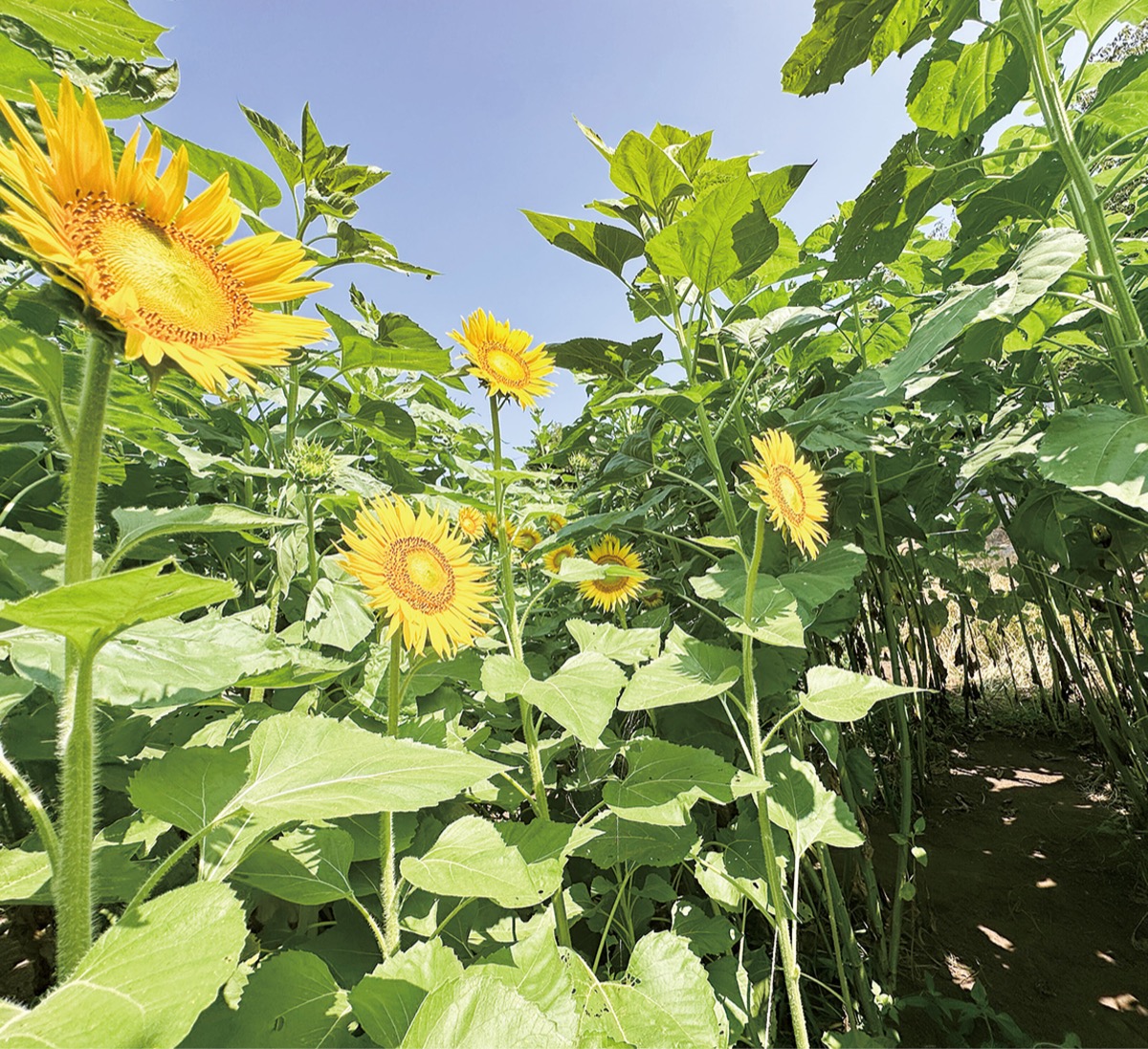 打戻の少年の森では現在、児童と保護者らが植えたヒマワリの迷路が完成し、一般に開放している。