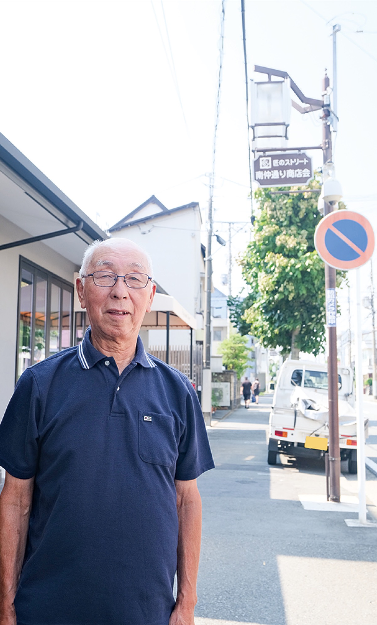 花屋やパン屋、和菓子屋、理容室、石材屋に加え、行列をなすラーメン屋に、クラフトビール醸造所、理化学製品の開発販売会社まで多種多様な業種がそろう「南仲通り商店会」。藤沢駅北口と藤沢本町駅の間に位置する。設立は2004年で現在28店舗が加盟している。会員の多くが技能者であることから「匠のストリート」という異名をもつ。