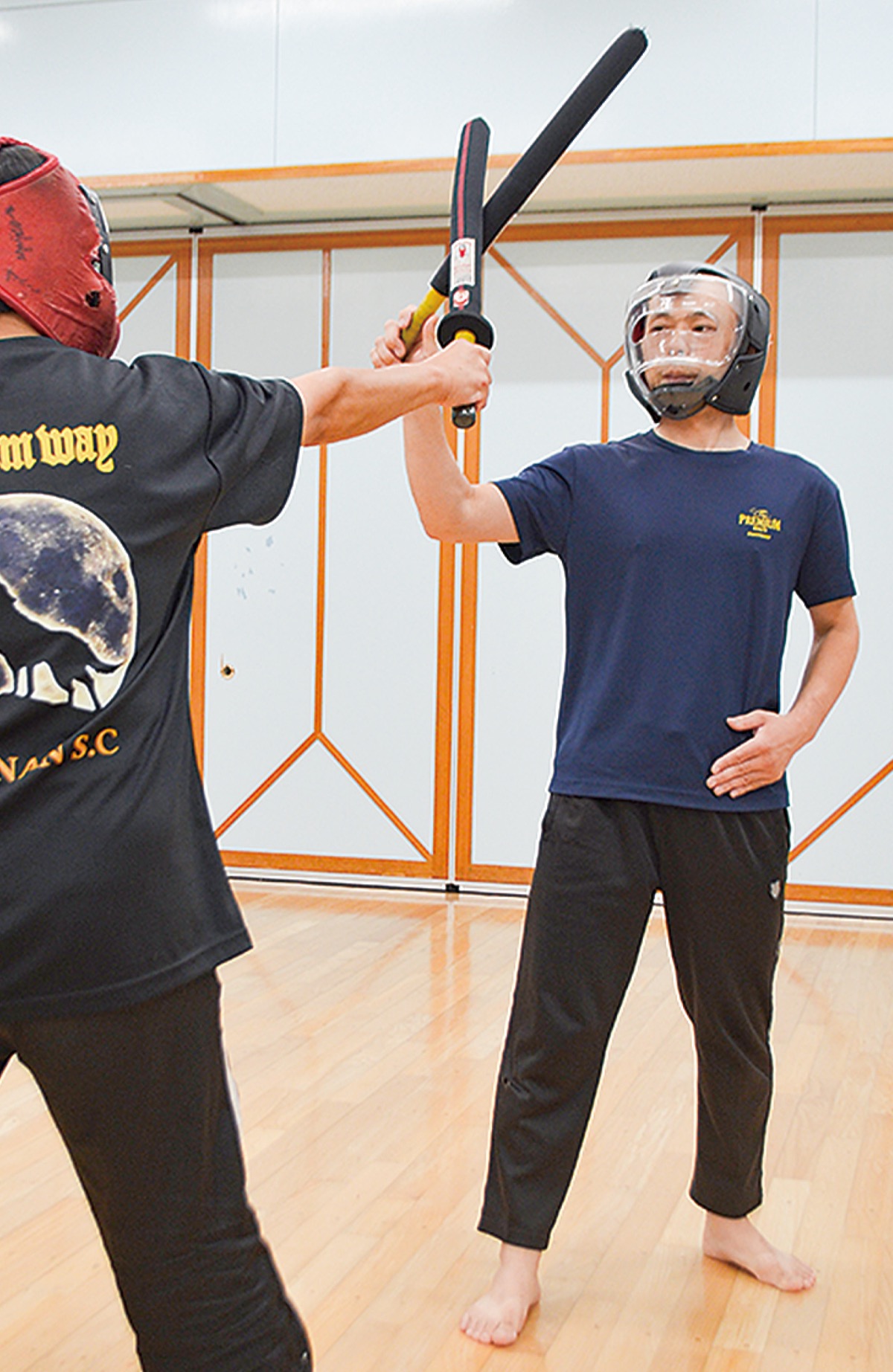 競技歴は20年以上で、以前は剣道に打ち込んでいたという櫻井さん。「剣道よりも手軽に取り組めるし、種目も複数あって色々体験できると思い、競技を始めた」と振り返る。同教室は現在、10〜50代の8人で活動している。櫻井さんと共に講師を務める代表の風魔忍さんは「当たっても痛みが少ないから比較的始めやすい。護身の意味合いを持ちつつ、ストレス発散にもなる」と競技の魅力を語る。
