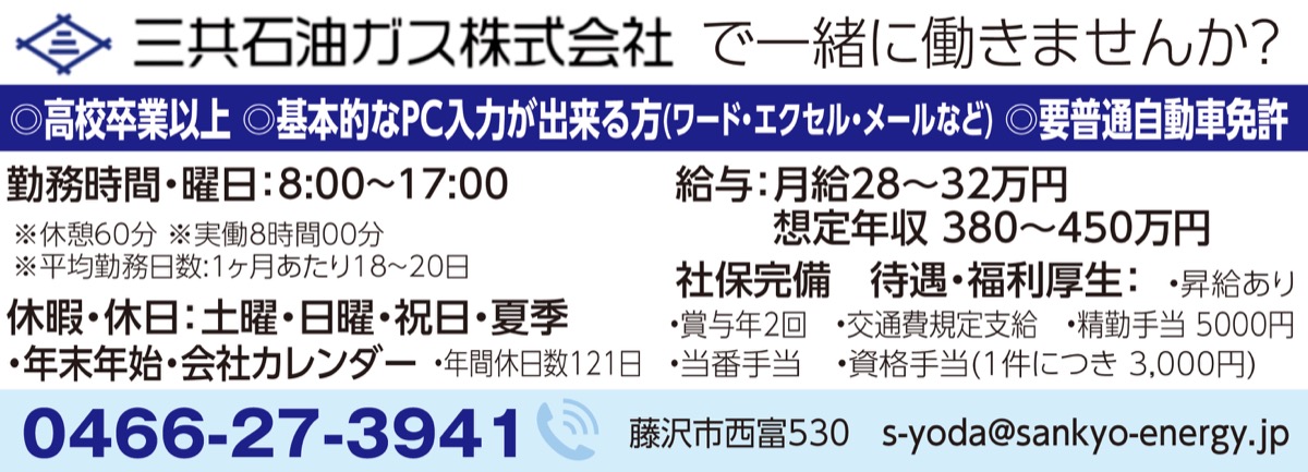 「藤沢の未来に貢献したいという情熱を持つ人材を広く歓迎します」と同社。問い合わせは【電話】0466・27・3941まで。