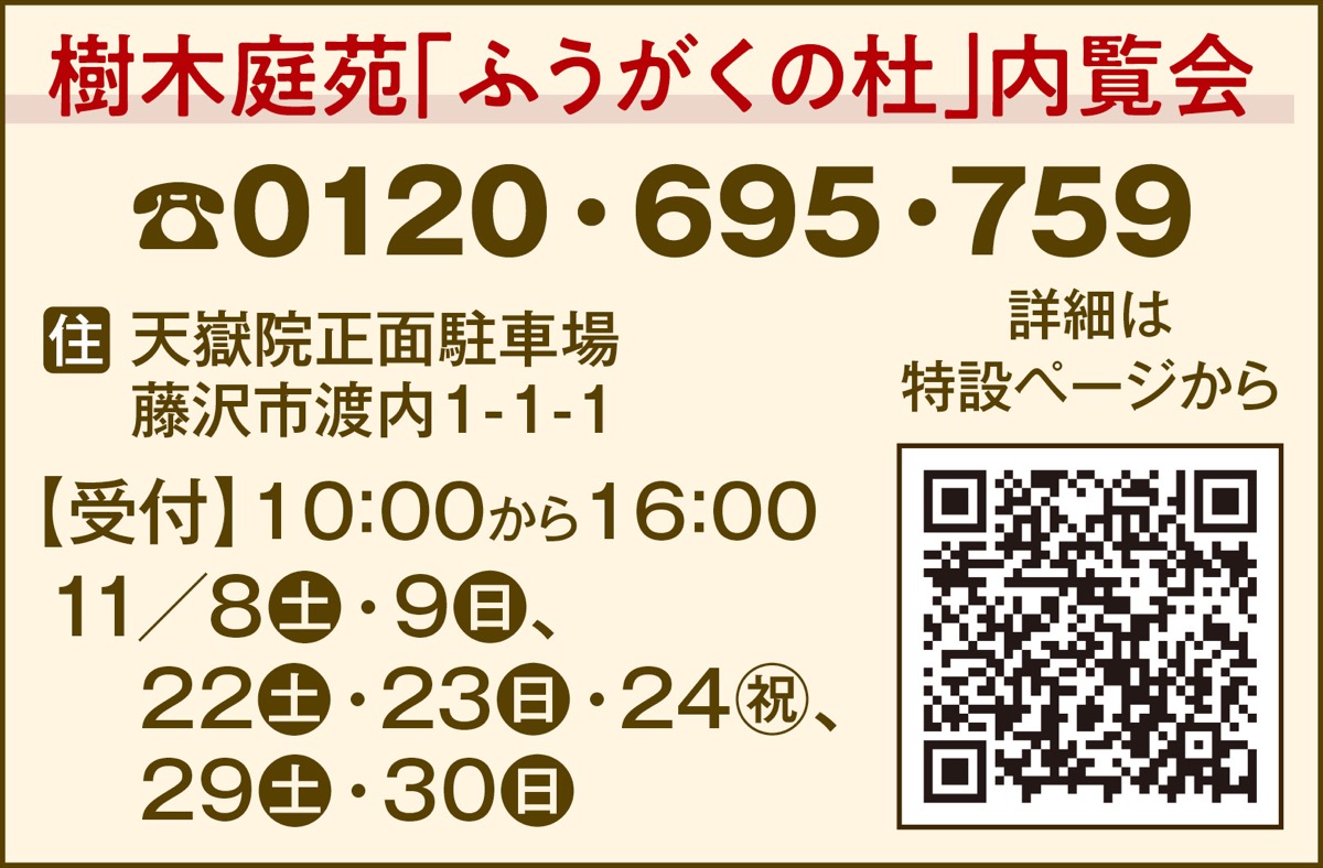 詳細は、二次元コードから特設ウェブサイトで確認できる。問い合わせは同苑【電話】0120・695・759。