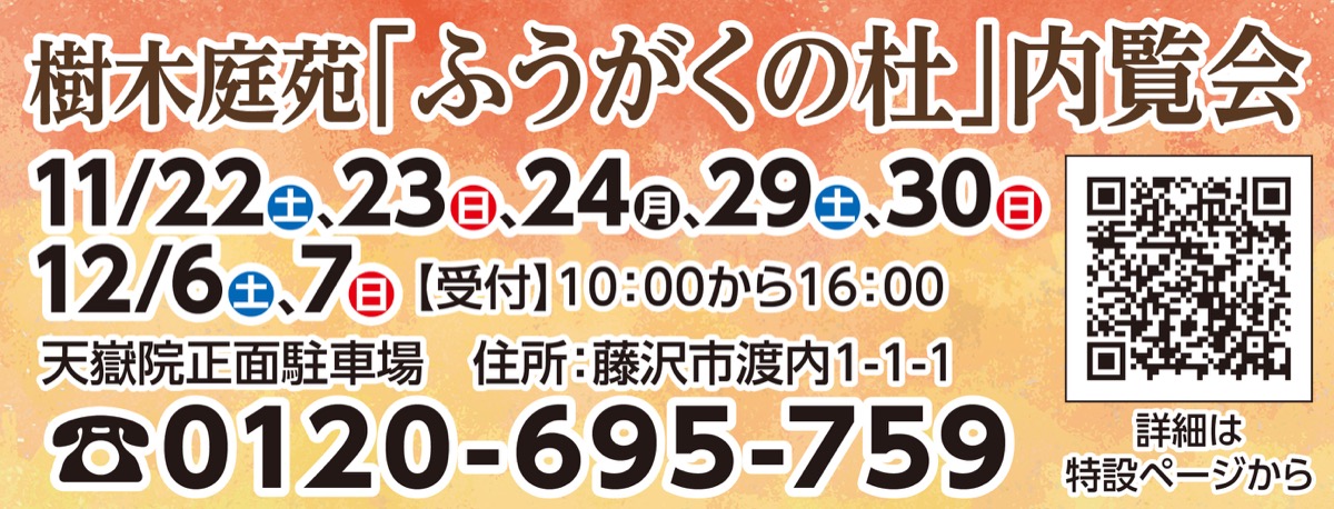 詳細は、二次元コードから特設ウェブサイトで確認できる。問い合わせは同苑【電話】0120・695・759。