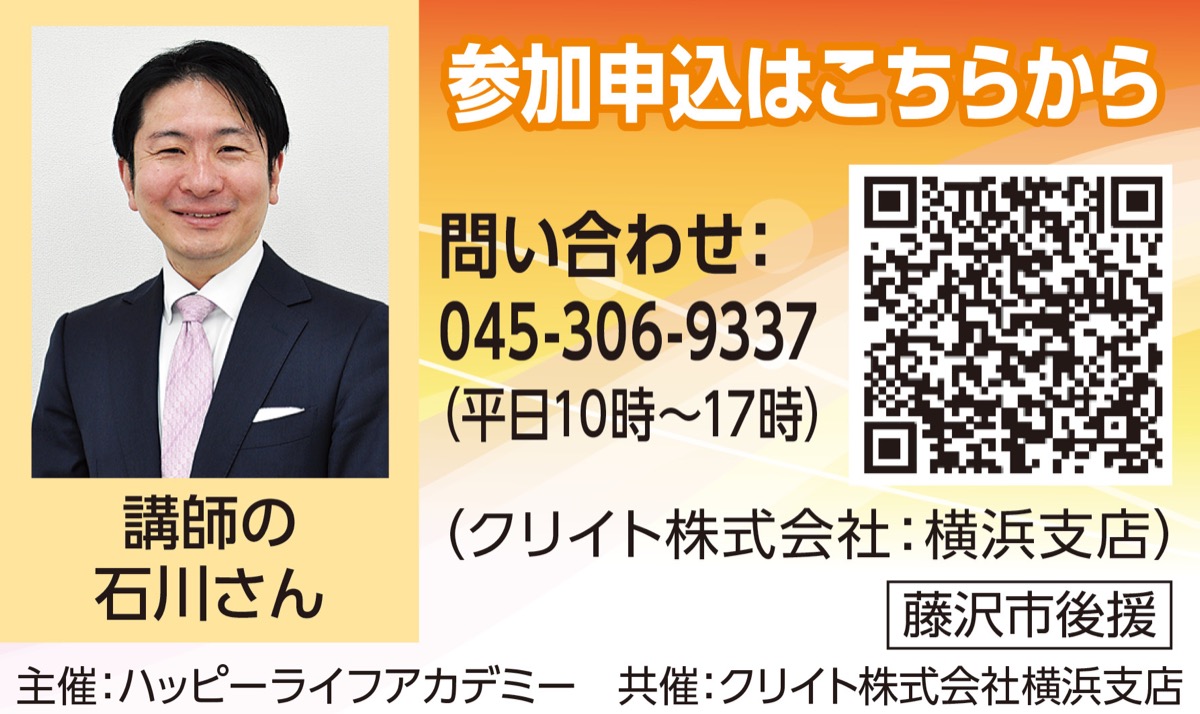 講師を務めるのはFP歴13年、相続診断士や公的保険アドバイザーの資格を持ち、多くの人の資金計画の相談に応じてきた石川直人さん。藤沢市が後援する。