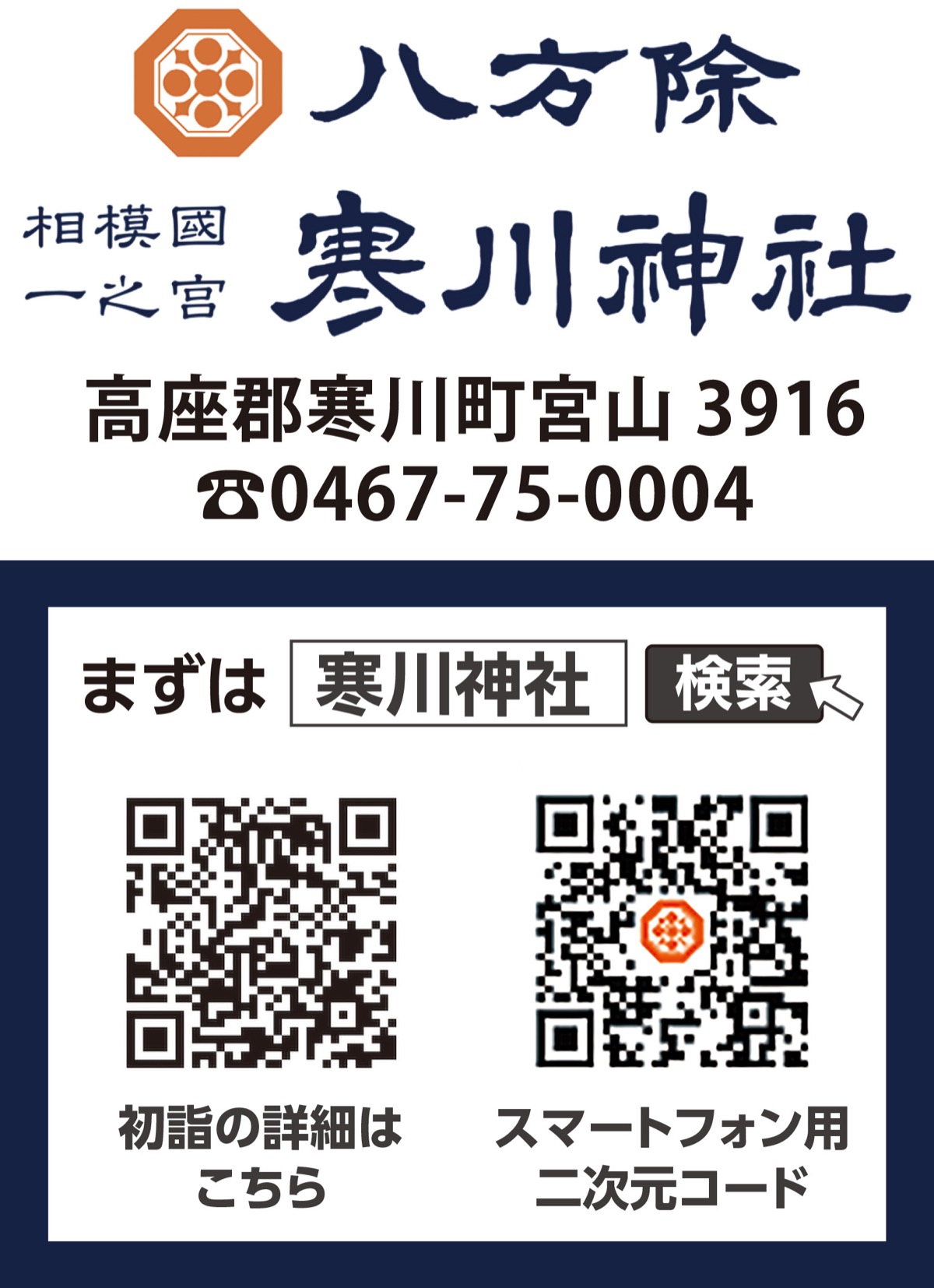 〒253-0195 神奈川県高座郡寒川町宮山3916 寒川神社社務所