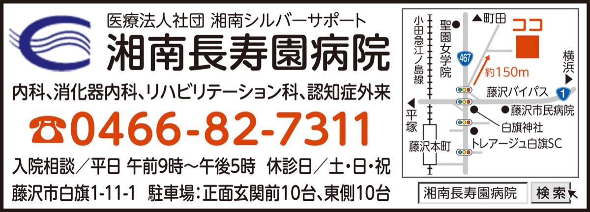 1980年に老人専門病院として開院した湘南長寿園病院(180床)は、藤沢市内で唯一の「介護医療院」(60床)。要介護で、自宅療養または他の介護施設では対応が難しい高齢の患者を受け入れている。病院機能を備えた介護保険施設であり、長期入院者が多いことから、生活の場としての機能をあわせ持つ。
