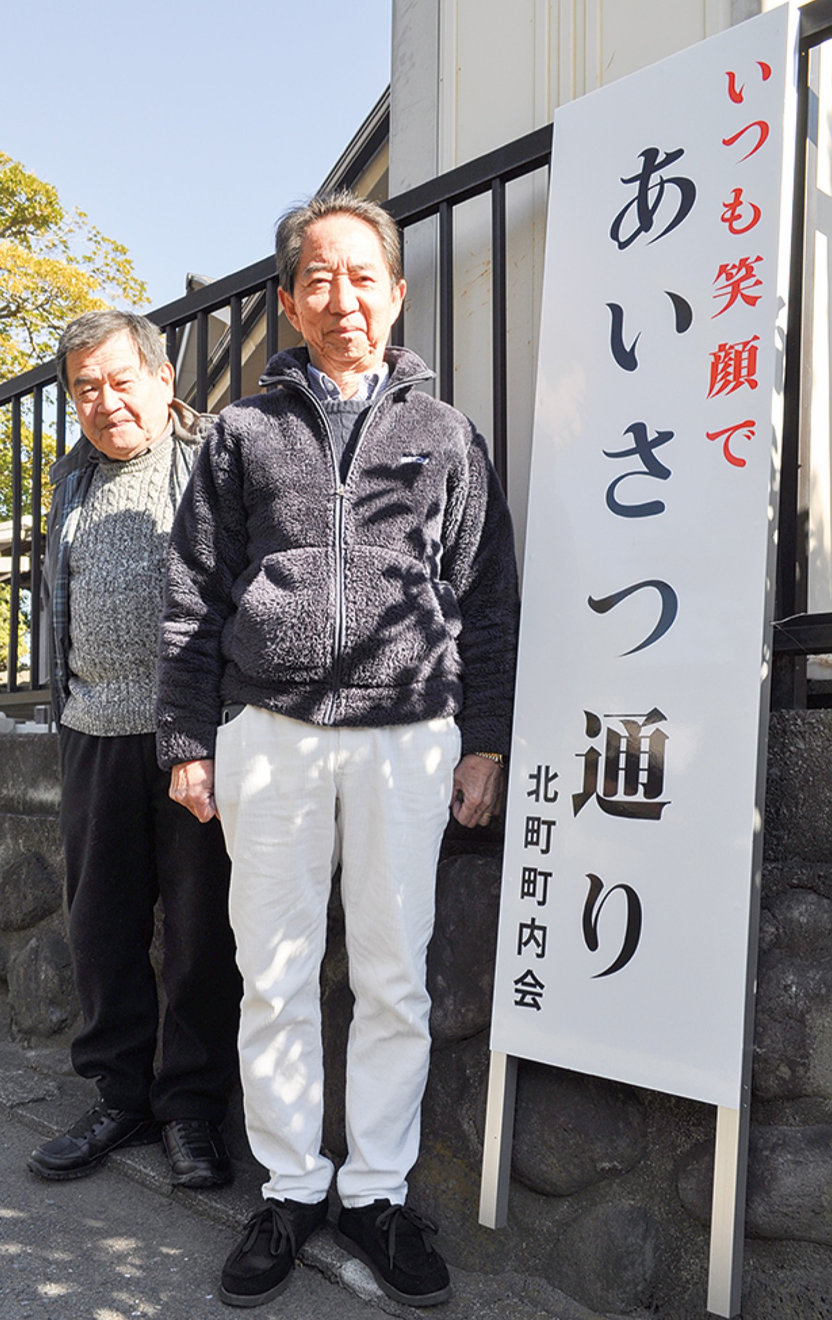 辻堂・北町町内会の区域に「いつも笑顔で あいさつ通り」の文字が踊っている。地域の絆を象徴する看板がこのほど、リニューアルされた。
