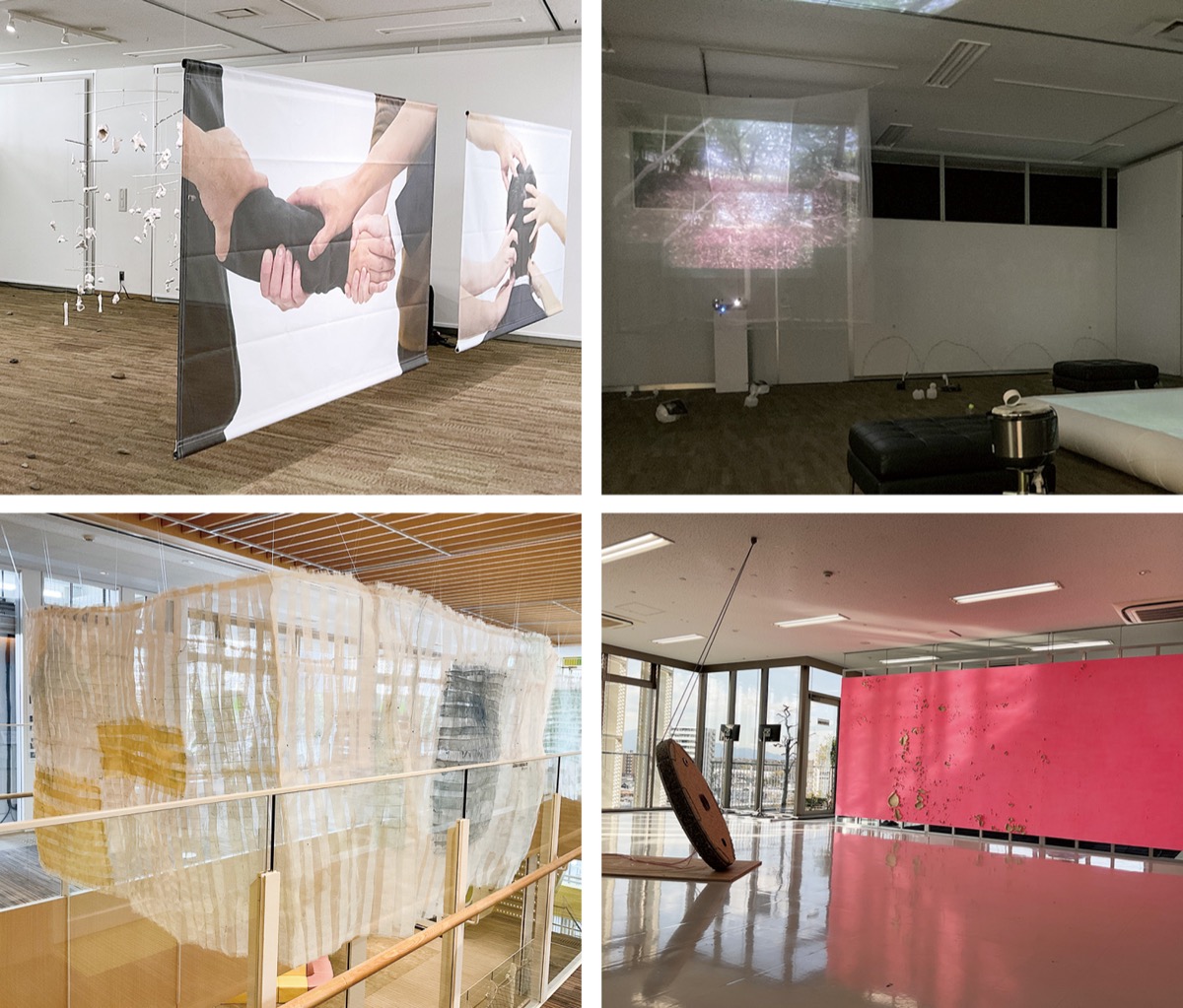 川松康徳さんと山本信幸さんによるチーム・dabadaは、ピンクに塗られた壁を展示。壊れていく壁を鑑賞しながら壁の向こうに思いを馳せてほしいとしている。平松可南子さんは、メッシュ生地で保護された辻堂海岸のクロマツからインスピレーションを受けた作品を、同館があるココテラス湘南の吹き抜け部分や階段などの共用スペースに展示している。
