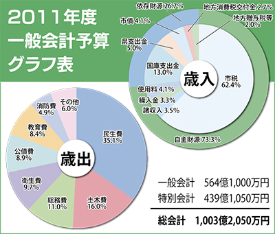 松尾市長は、厳しい財政状況において、前年度に引き続き選挙公約に掲げた「子育て・教育・福祉」に関わる緊急性の高い事業を「可能な限り拡充した」と説明。また、11年度は3つの新たな取り組みをスタートするとして、新計画に基づく行革の更なる推進、長期的展望を担うシンクタンク「政策創造担当」の設置、公共施設を有効活用する「ファシリティーマネジメント」の構築を掲げた。