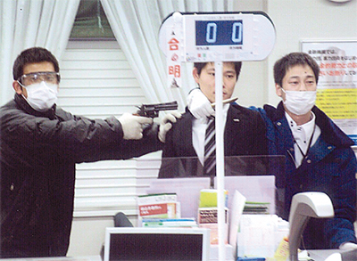 先月25日、三井住友銀行鎌倉支店(市内雪ノ下)で銀行強盗の模擬訓練が行われた。緊急時の行員の任務分担や役割、通報ボタンの押し方など、心構えの再確認を行うことで防犯意識の向上につなげる。