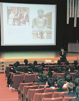高徳院の住職で慶應義塾大学文学部教授の佐藤孝雄氏が、今月12日に江の島のかながわ女性センターで開かれた母校県立七里ガ浜高校(吉田幸一校長)の新入生ガイダンスで講演した。