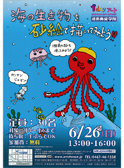 今回のテーマは「海の生き物を砂絵で描いてみよう!!」。湘南の砂も使っての砂絵体験を企画している。
