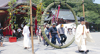 6月の神事は「夏越(なごし)の大祓」といわれる。同宮では「古来より、日々の生活を送る間に、知らず知らずに身についてしまった罪やけがれを祓う神事。心身ともに清らかに立ち返ることを祈るもの」とする。これから厳しい夏を迎えるにあたって、息災を祈る意味もある。