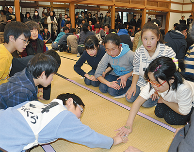 参加者の8割は市内の小学生。大会にむけて家族や友人と練習を重ねてきたという。子どもたちは「また来年も出たい」と感想を口にし、広間を後にした。