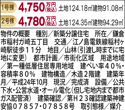 稲村ガ崎駅から徒歩11分鎌倉プリンス裏手の閑静な住宅地にマイホームを。