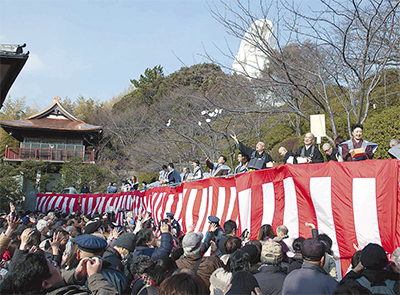 今日1日には一足先に大船観音寺(市内岡本)で「節分追儺会(ついなえ)」が行われる。午後2時から境内中央の特設ステージで豆まきを実施。女子プロレスラーのジャガー横田さんと夫の木下博勝さん、女優の伊藤かずえさん、五大路子さん、元バレーボール選手の多治見麻子さん、江藤直美さん、落合真理さんをゲストに招く。入場料として大人300円、子ども100円が必要。