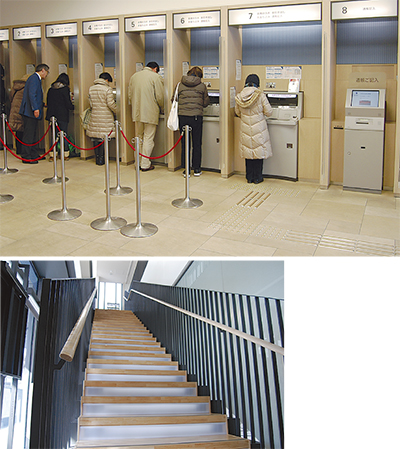 さらに同社では、ハード面だけでなく接客などの「ソフト面」でもバリアフリーの取り組みを進めている。ロビーには他の店舗よりスタッフを多めに配置し、高齢者のATM利用などを手助けする。また助聴機や筆談のための器具も用意されているほか、「サービス・ケア・アテンダント」の資格を持つスタッフを配置している。