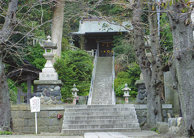 鳥居をくぐり参道を進み細い階段を上がると本殿が現れます。そこで後ろを振り返ると由比ヶ浜海岸を一望する事が出来ます。神社の周辺には鎌倉文学館や吉屋信子記念館、さらには明治から大正にかけての別荘時代の名残である洋館が多くみられます。