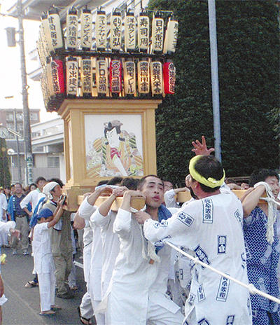 同夏まつりのメインは新川での灯ろう流し、万灯みこし、ズンドコ踊りの3本柱。みこしは、まつりをスタートさせた10年前に同会会員が手づくりした。また、「新川でしじみをとった」という昔の深沢の情景や、「西に富士山 モノレール」といった風景が描写されているズンドコ踊りの歌詞もメンバーでつくったもの。