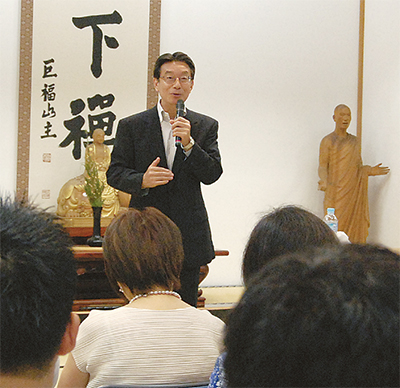 ザ・リッツ・カールトンホテルの元日本支社長として知られ、「人とホスピタリティ研究所」代表の高野登さんの講演会が7月26日、建長寺で開かれた。