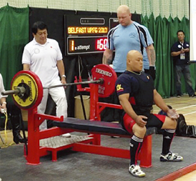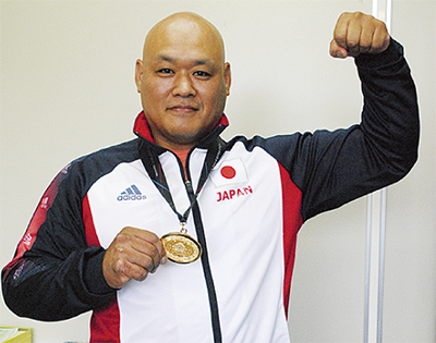 普段は浄明寺出張所に消防司令補・救急隊長として勤務。ベンチプレスは仕事の延長として20年ほど前に始めたという。大船の実家にあるホームジムで1日3、4時間汗を流す。始めた当初は67・5kgだった体重も現在は90kgになった。