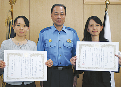 鎌倉署は9月5日、積極的な声かけで振り込め詐欺を未然に防いだとして、三菱東京UFJ銀行鎌倉支店の守屋奈緒子さんと佐々木美和さんに感謝状を贈った。